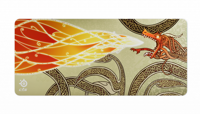 SteelSeries QcK XXL - CS2 Dragon Lore Edition este un mousepad de gaming de dimensiuni mari, inspirat de celebrul skin Dragon Lore din Counter-Strike 2.