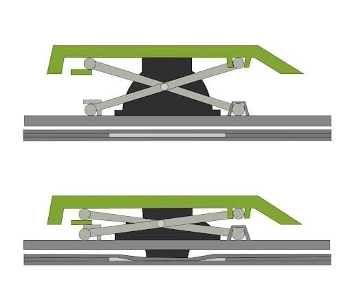 Toate tastaturile cu membrană și tastaturile mecanice care utilizează switch-uri liniare necesită ca tastele să ajungă la poziția cea mai de jos a tastelor pentru a ajunge la punctul de acționare și a înregistra intrarea. În switch-urile tactile și switch-urile clicky, punctul de acționare este atins înainte de a atinge punctul cel mai jos, permițând utilizatorului să-și elibereze degetele în mijlocul cursei tastei, iar încă să înregistreze o apăsare a tastei.