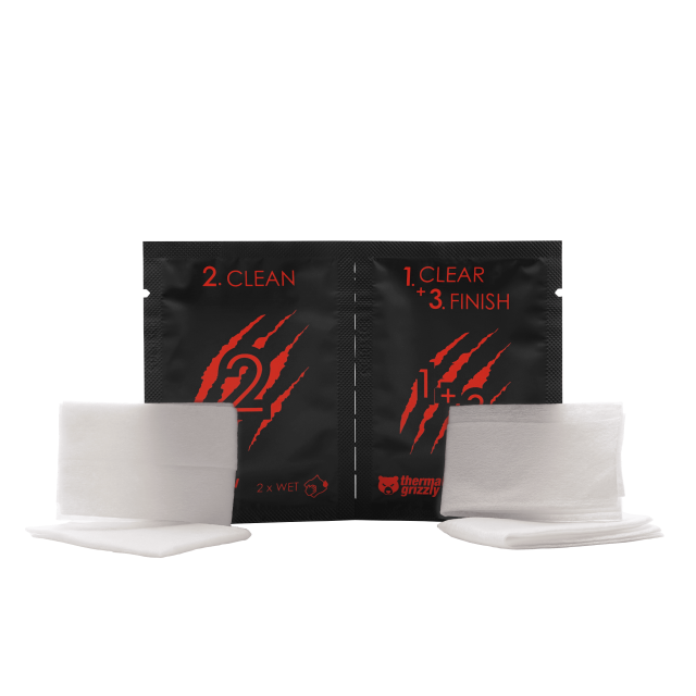 Thermal Grizzly Cleaning Wipes sunt servetele special concepute pentru curatarea eficienta a suprafetelor inainte de aplicarea pastelor termice sau a metalului lichid. Setul include servetele umede si uscate, ideale pentru indepartarea reziduurilor de grasime si pentru pregatirea optima a suprafetelor, asigurand conductivitate termica maxima. Sunt recomandate pentru utilizare pe CPU, GPU si alte componente sensibile.