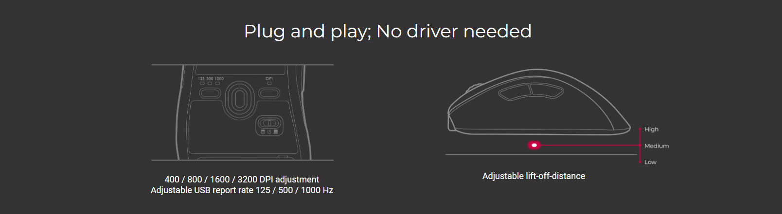 | DPI | 400 / 800 / 1600 / 3200 | Connectivity | 2.4G Wireless |