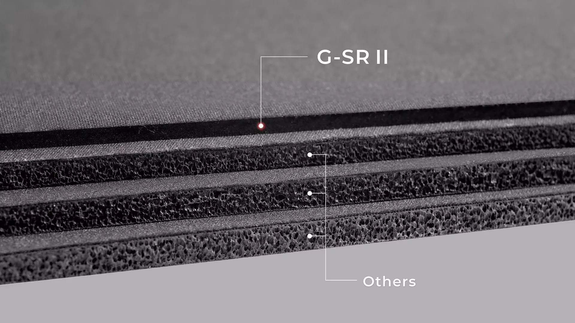 G-SR II’s top layer of cloth stays dry and avoids sticky glide feeling often resulted from clogged moisture.
