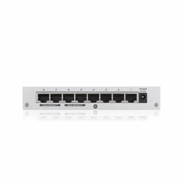 ZyXEL GS-108B v3 Switch Ethernet Gigabit cu 8 porturi conecteaza dispozitivele la reteaua de domiciliucu cu mare viteza Gigabit. Porturile QoS garanteaza un transfer lin pentru aplicatii intensive de banda, precum VoIP si comunicatii de date.