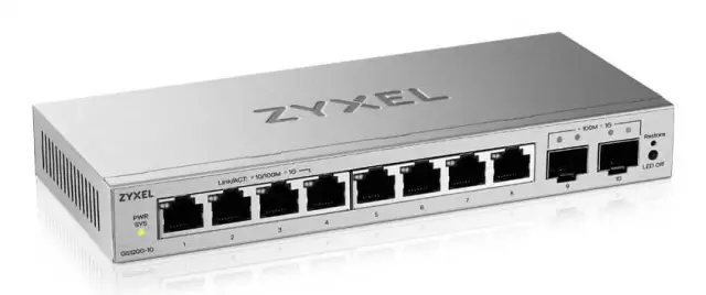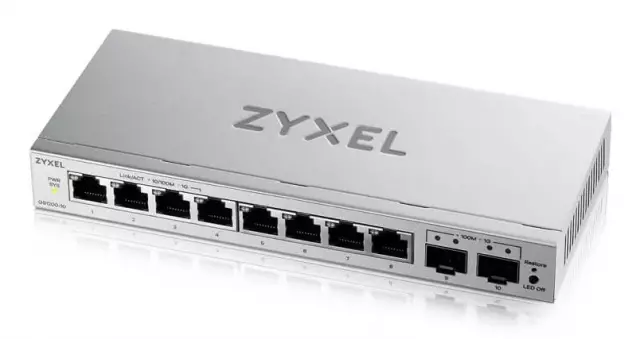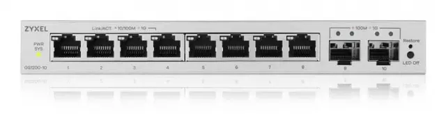 ZYXEL GS1200-10v3 este un switch smart cu 10 porturi Gigabit, ideal pentru birouri mici si retele de acasa. Ofera administrare simpla, performanta stabila si functii esentiale pentru optimizarea traficului, mentinand un consum redus de energie.