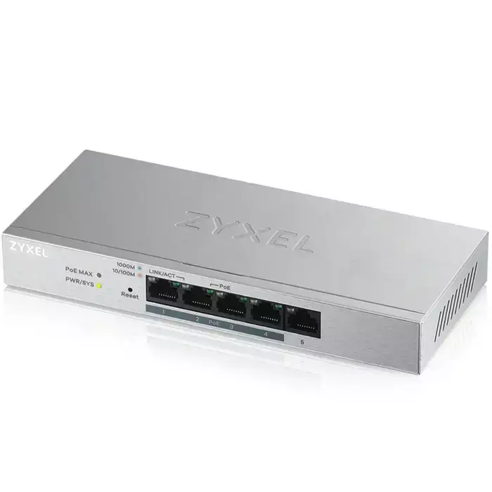 ZYXEL GS1200-5HPv3 este un switch compact si eficient, ideal pentru retele mici sau birouri care au nevoie de conectivitate stabila si alimentare PoE. Oferind administrare simplificata si performanta constanta, acest model este o solutie practica pentru dispozitivele moderne.