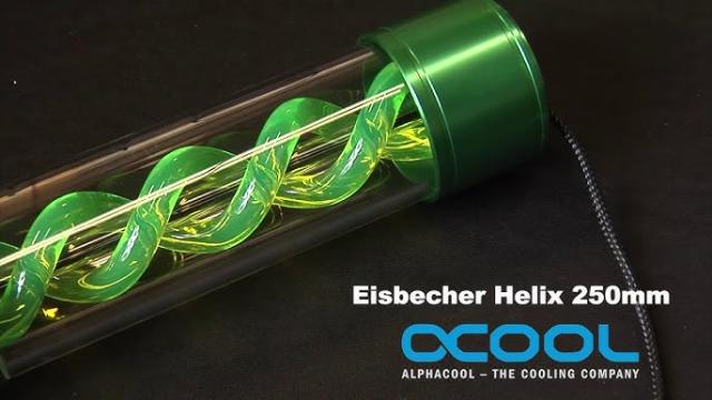 Alphacool Eisbecher Helix 250 мм – Зелен е резервоар за водно охлаждане, който съчетава функционалност и визуален ефект.