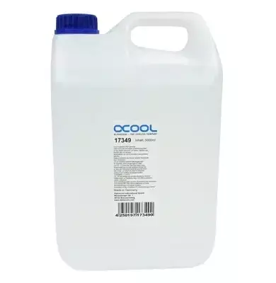 Вода, произведена специално за Alphacool директно от висококачествена система за обратна осмоза. Пречистена от 5 специални филтъра (един от които е специален филтър за обратна осмоза), водата е абсолютно без соли и метали, т.е. всички компоненти, които се намират в нормалната чешмяна вода. Процесът премахва хлор, миризми, тежки метали като олово, мед, кадмий, живак и др., селскостопански химикали, хормони, антибиотици, пестициди, фунгициди, хербициди, остатъци от лекарства, канцерогенни органични съединения на хлора, радиоактивни вещества, азбестови влакна, катранени съединения, нитрити, нитрати и други замърсители.