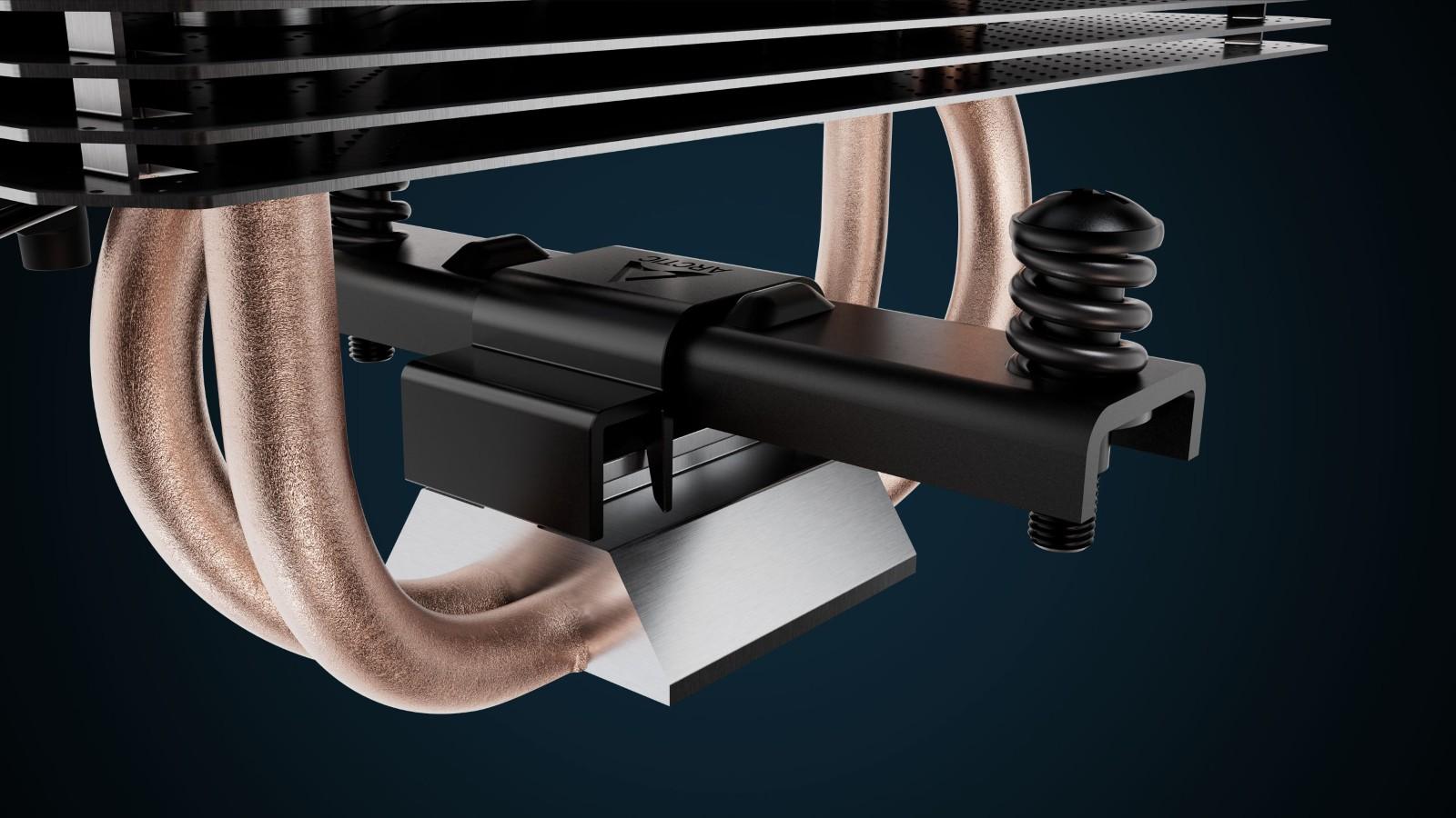 Allows offset mounting of the heatsink towards the CPU hotspot, optimizing alignment for asymmetric multi-die CPUs and ensuring more efficient heat transfer.