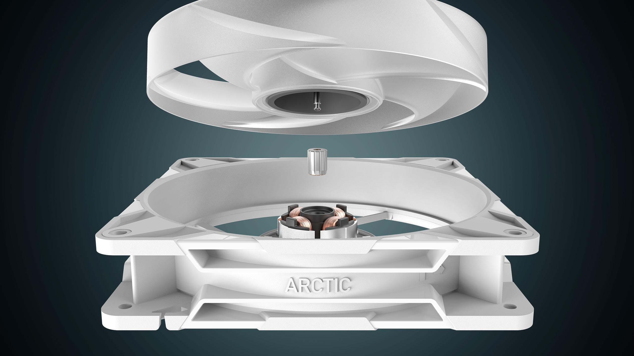 Комплект вентилатори 3-Pack ARCTIC P14 Pro Reverse A‑RGB White 140mm PWM (ACFAN00328A) е премиум комплект от три 140 мм вентилатора с „reverse airflow“ дизайн, при който въздухът се засмуква от задната страна. Моделът предлага високо статично налягане, отличен въздушен поток и ярко A‑RGB осветление — идеален за системи с прозрачен страничен панел и конфигурации с високо съпротивление на въздуха.