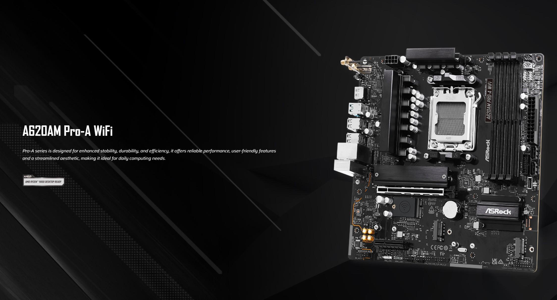 Дънна платка ASRock A620AM PRO-A WIFI, AM5