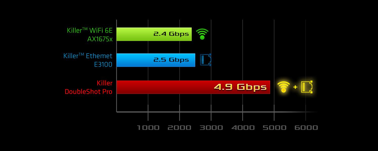 - 2.5 Gigabit LAN 10/100/1000/2500 Mb/s - Killer E3100G - Supports Killer LAN Software - Supports Killer DoubleShot™ Pro |