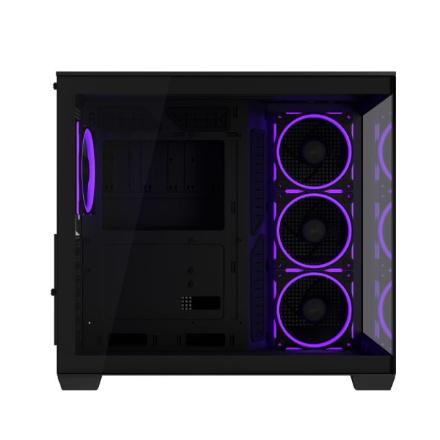 Experience a seamless view unobstructed by a front pillar, offering an unparalleled visual display of the internal components and ensuring your build shines from every angle.