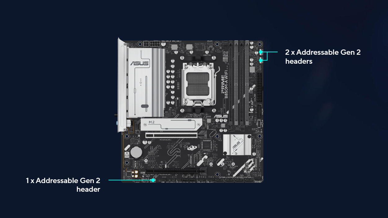 | Expansion Slots | AMD Ryzen 9000 & 7000 Series Desktop Processors* 1 x PCIe 5.0 x16 slot (supports x16 mode) AMD Ryzen 8000 Series Desktop Processors 1 x PCIe 4.0 x16 slot (supports x8/x4 mode)** AMD B850 Chipset 1 x PCIe 4.0 x16 slot (supports x1 mode) * Please check the PCIe bifurcation table on the support site (https://www.asus.com/support/FAQ/1037507/). ** Specifications vary by CPU types. - To ensure compatibility of the device installed, please refer to https://www.asus.com/support/download-center/ for the list of supported |