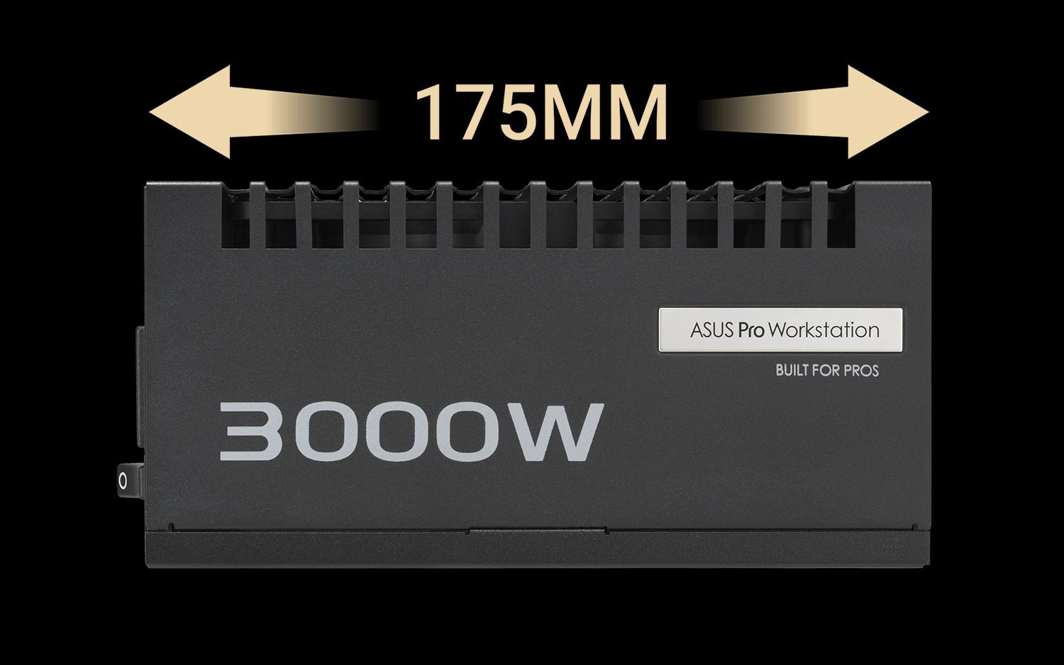 The ASUS Pro WS 3000W Platinum PSU is engineered to support up to four GeForce RTX 5090 graphics cards. It also features 80 PLUS Platinum certification, high-performance copper pins, dual-ball fan bearings, etched cables, rock-solid voltage stability and advanced power delivery, making it an ideal choice for AI solutions, deep learning and IT management.