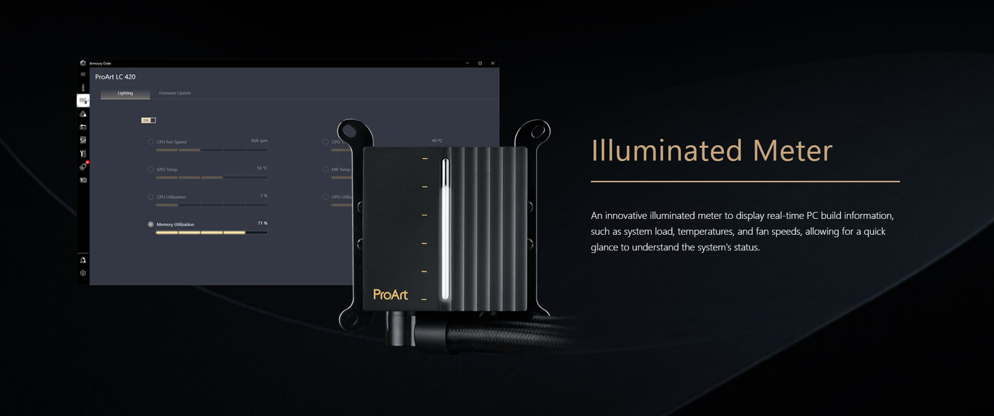 Stealth Metal Power fans, the ProArt LC 240 expertly integrates premium tech into an elegantly understated design. An illuminated