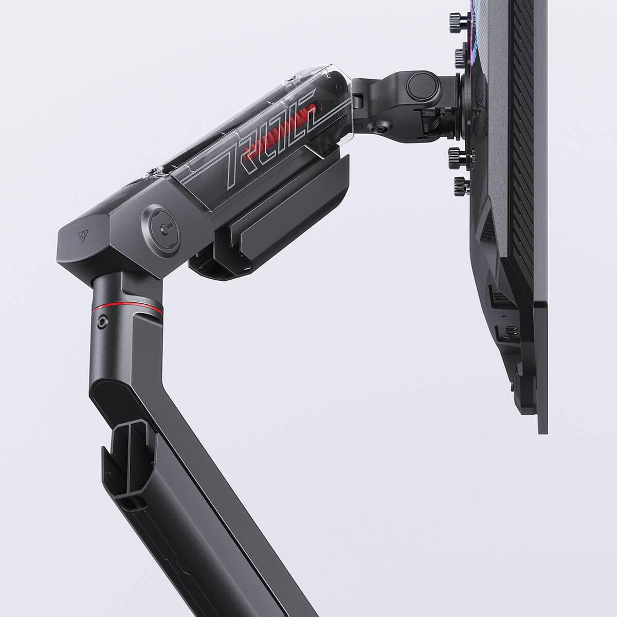 The mechanical spring system of the ROG Ergo Monitor Arm allows for smooth, effortless adjustments through a wide range of