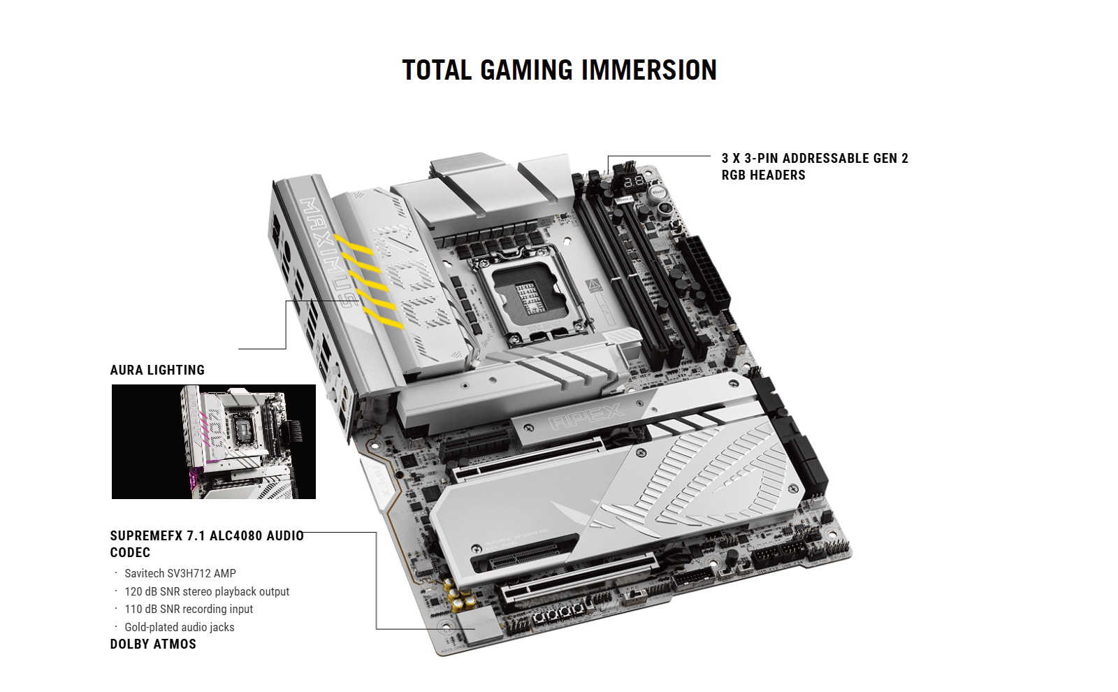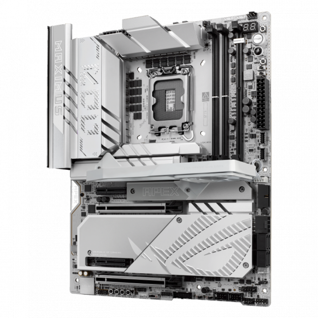 build, the ROG Maximus Z890 Apex features a cobble-gray surface, polished