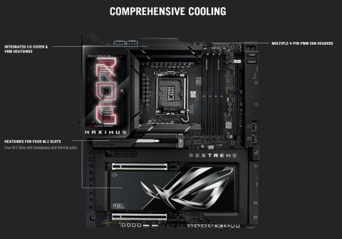 | Accessories | Cables 1 x 1-to-3 ARGB splitter cable 1 x 1-to-2 ARGB splitter cable 2 x 1-to-4 fan splitter cable 2 x ROG weave SATA 6G cable packages 1 x 3-in-1 Thermistor cables pack ROG Q-DIMM.2 with Heatsink 1 x ROG Q-DIMM.2 with heatsink 1 x M.2 pad package for ROG Q-DIMM.2 2 x Thermal pad for ROG Q-DIMM.2 Additional Cooling Kit 2 x Thermal pad for M.2 22110 1 x DDR5 Fan holder Miscellaneous 1 x ASUS WiFi Q-Antenna 1 x Q-connector 1 x ROG logo plate sticker 1 x ROG screwdriver 1 x ROG stickers 1 x ROG VIP card 2 x M.2 Q-Slide packages 6 x M.2 backplate rubber packages 1 x ROG Bottle Opener Installation Media 1 x USB drive with utilities and drivers Documentation 1 x Quick start guide |