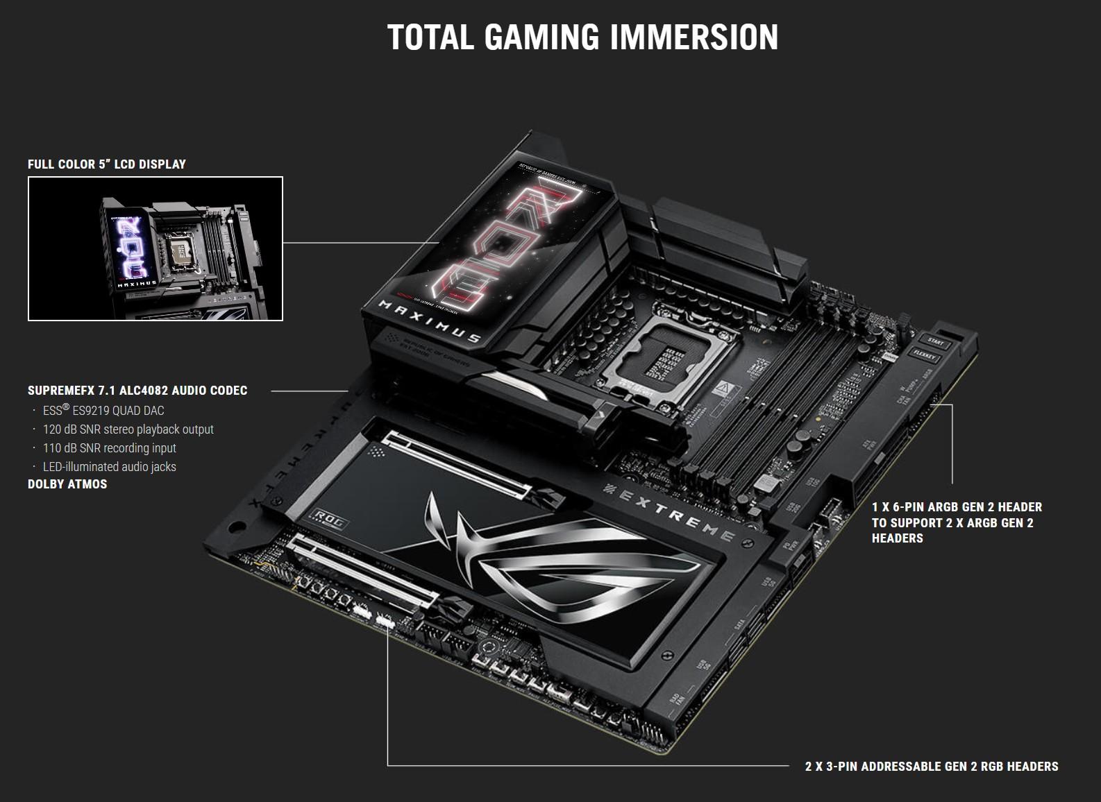 | Software Features | ROG Exclusive Software - ROG CPU-Z - Dolby Atmos - Internet Security (1-year full version) ASUS Exclusive Software Armoury Crate - AIDA64 Extreme (1 year full version) - Aura Creator - Aura Sync - Fan Xpert 4 (with AI Cooling II) - GameFirst - HWiNFO - Power Saving - LCD Display ASUS AI Advisor ASUS Driver Hub Turbo Vcore ASUS GlideX Thunderbolt Share USB Wattage Watcher WinRAR (40 Days Free Trial) Adobe Creative Cloud (Free Trial) UEFI BIOS AI Overclocking Guide NPU Boost ASUS EZ DIY - ASUS CrashFree BIOS 3 - ASUS EZ Flash - ASUS UEFI BIOS EZ Mode - ASUS MyHotkey |