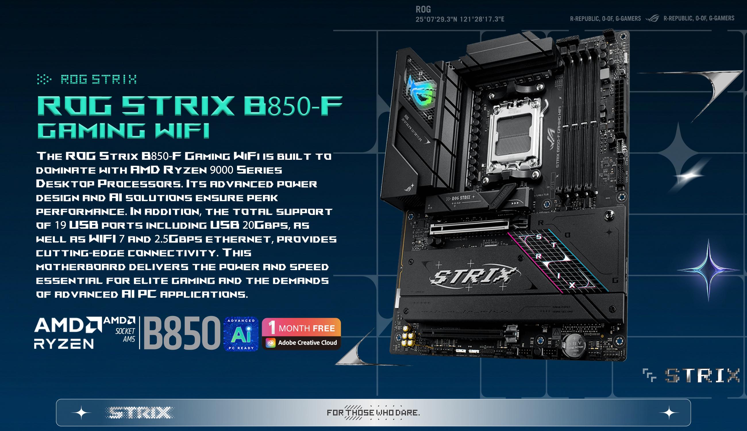 | CPU | AMD Socket AM5 for AMD Ryzen 9000 & 8000 & 7000 Series Desktop Processors* * Refer to https://www.asus.com/support/download-center/ for CPU support list. |