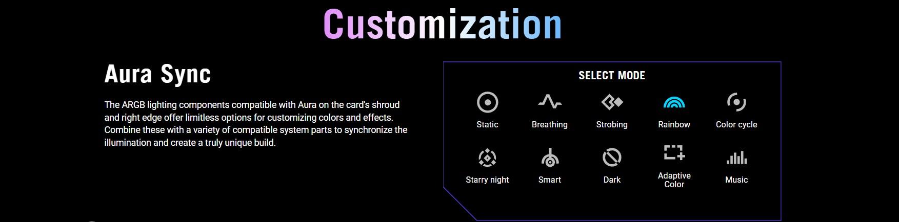 | Resolution | Digital Max Resolution 7680 x 4320 | AURA SYNC | ARGB |