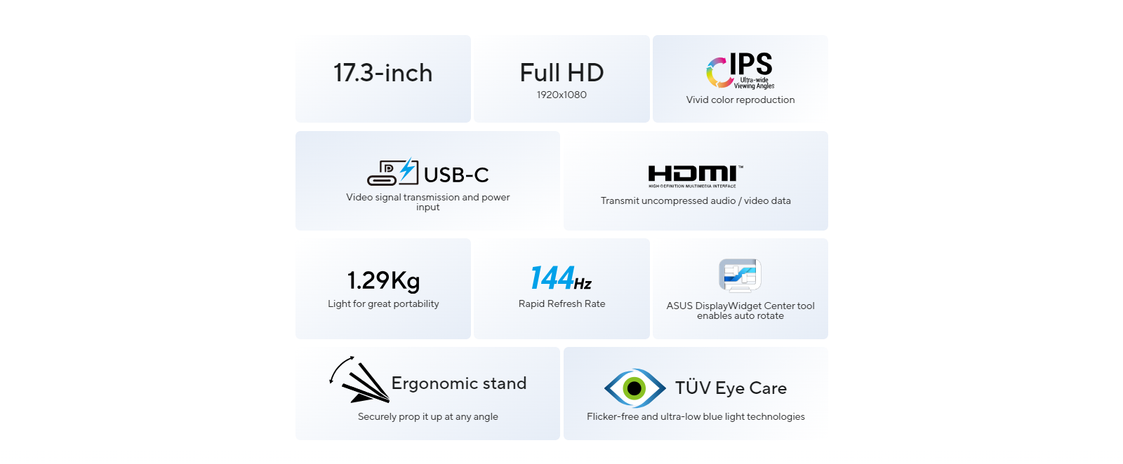ASUS ZenScreen MB17AHG is a 17.3-inch portable monitor with an Full HD IPS display that delivers supersmooth, fluid visuals. Its ultrathin 7 mm