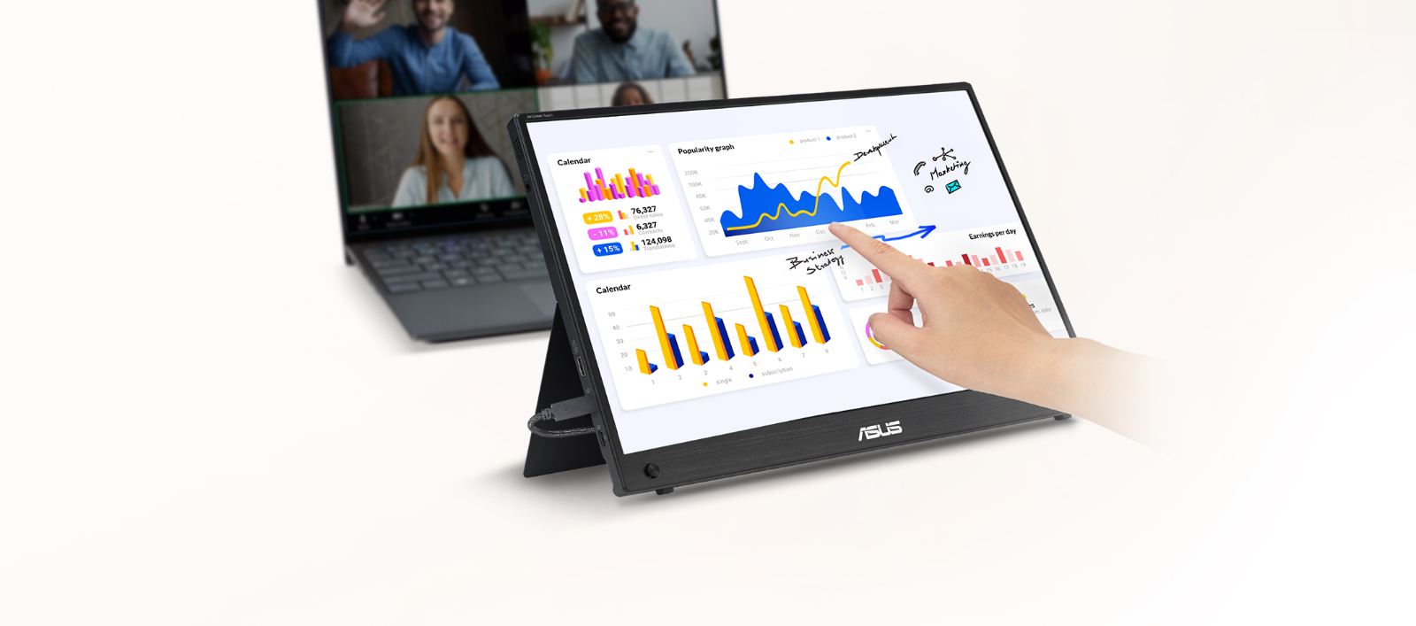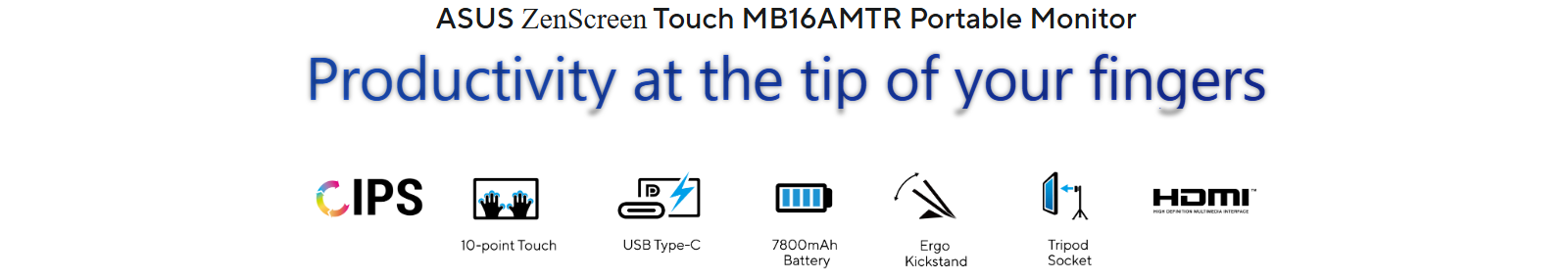 ASUS ZenScreen Touch MB16AMTR is a slim and lightweight 15.6-inch IPS FHD portable monitor with a large