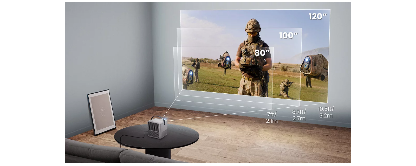 The GP100 turns any space into an immersive gaming experience. Get a 120” screen from just ten feet away.