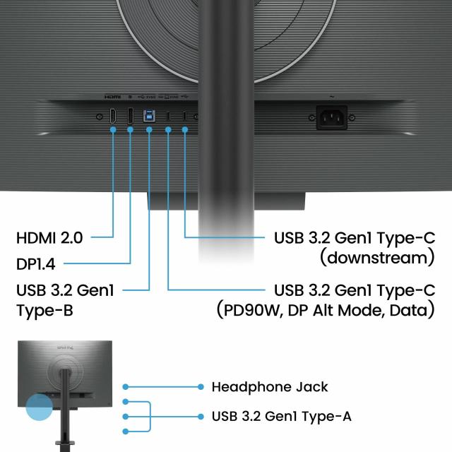 1 x USB Type-B upstream (USB 3.2 Gen 1, 5 Gbps, data only)