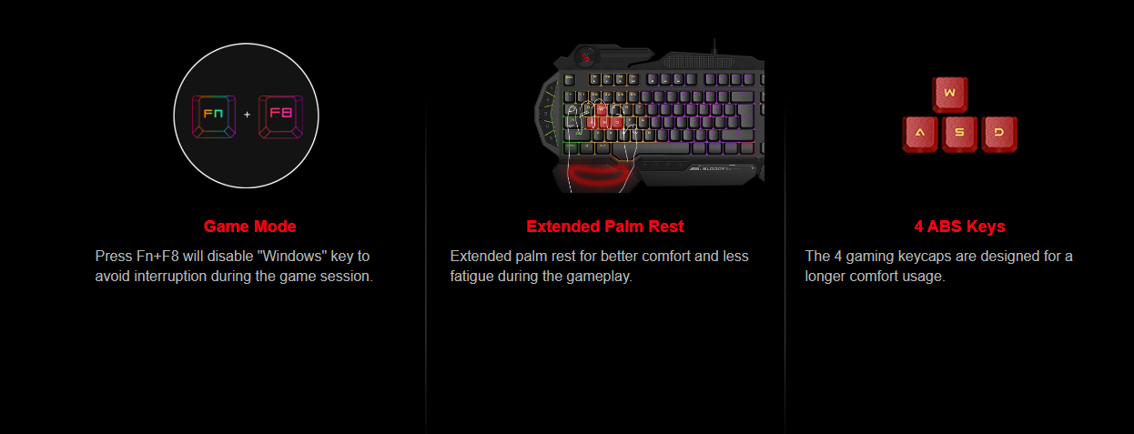 Bloody B314 е механична клавиатура с подсветка генерираща над 16 милиона цвята. Суичовете ѝ са базирани на нова инфрачервена технология от Bloody, която превръща всеки бутон в най- бързия на света с време за реакция под 0.2 мили секунди. Bloody B314 притежава странични 9 макро бутони, които са 100% програмируеми. Space -а е подсилен с две пружини и балансиращи елементи, които гарантират доста по-продължителен живот и издръжливост на копчето. WASD бутоните са покрити със силикон, който гарантира уникален комфорт и издръжливост, но не това е специалното именно на тези 4 клавиша.