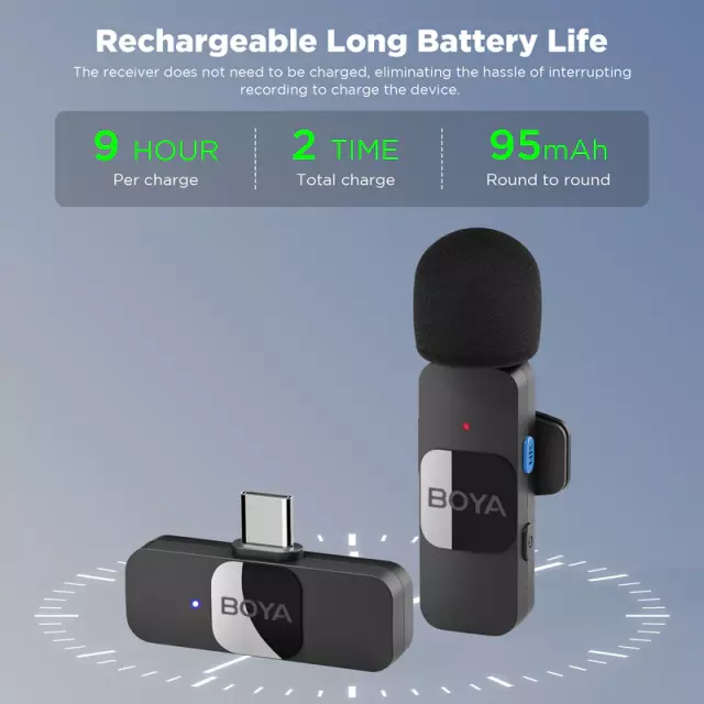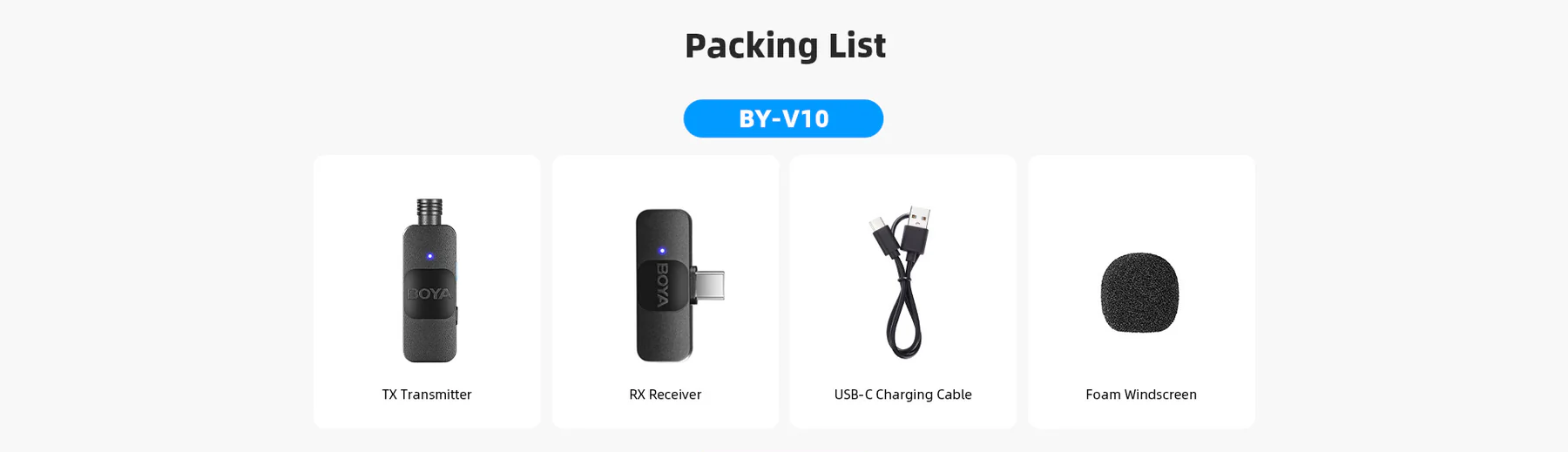 BY-V серията е професионална безжична микрофонна система, идеална за запис в движение – независимо дали пътувате, записвате подкасти или излъчвате на живо. BY-V10 е подходяща за повечето Android устройства с USB-C портове и включва 1 предавател и 1 приемник. Тя предлага висококачествено аудио решение на достъпна цена, което я прави подходяща за по-широк кръг потребители.