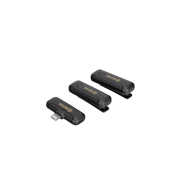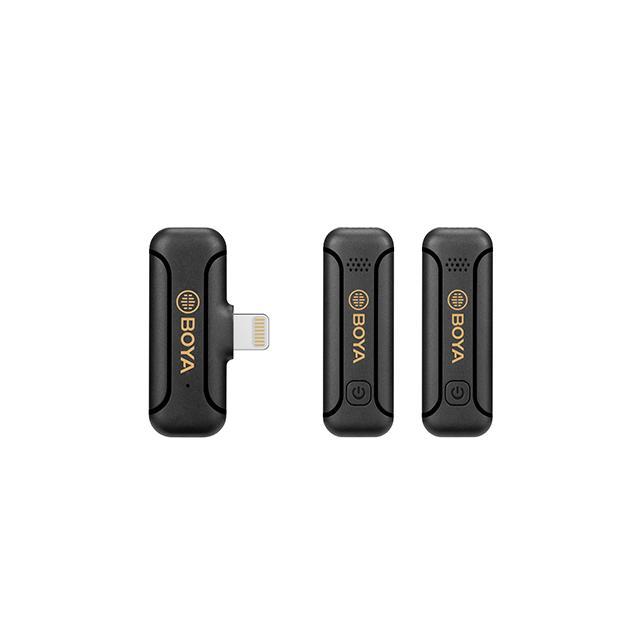 Серията BY-WM3T2 е мини 2,4 GHz безжична микрофонна система, която осигурява висококачествен звук за стрийминг на живо, видеоблогове, запис на курсове и други приложения за заснемане на звук. С MFi Certified Lightning изход, BY-WM3T2-D2 е предназначен за Apple iOS устройства. Включително 2-та предавателя, той може да записва два източника на звук едновременно.