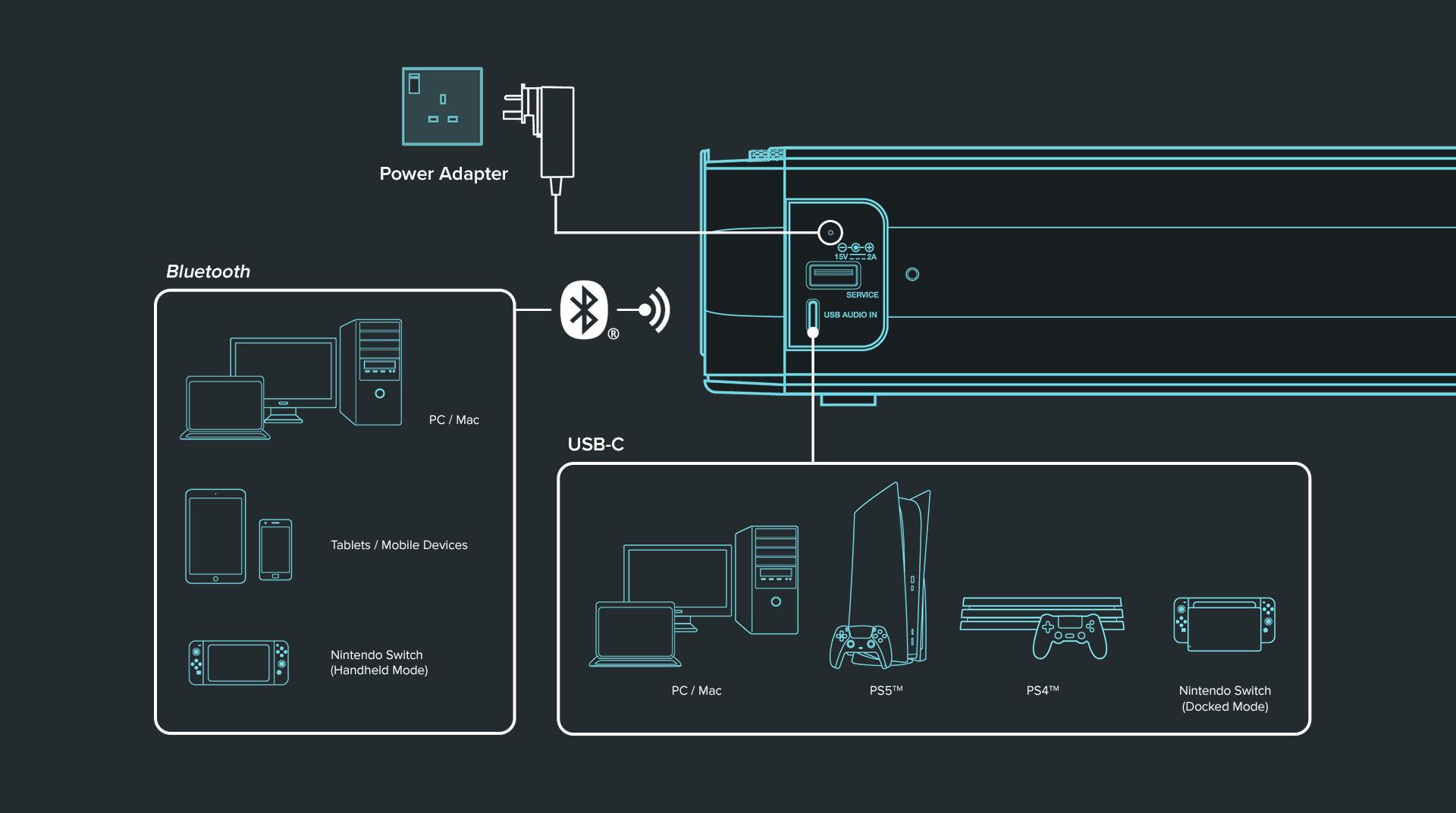 | Channels | 2.0 | Supported Platforms | Windows PC, Mac, Nintendo Switch, Mobile (via Bluetooth®) |