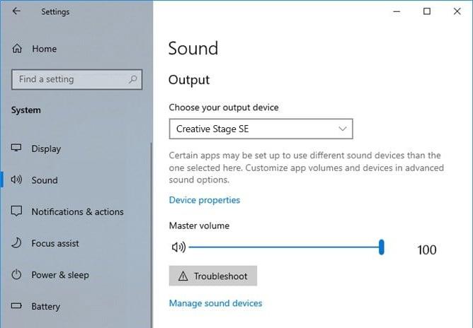 If you have multiple audio devices connected to your PC, you can also manually select Creative Stage SE as the default output speaker in the 'Sound' setting.