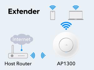Wi-Fi Extender (repeater) mode extends a existing Wi-Fi coverage to hard-to-cover area.