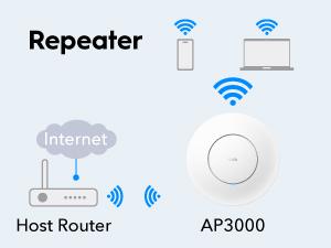 Wi-Fi Extender (repeater) mode extends a existing Wi-Fi coverage to hard-to-cover area.