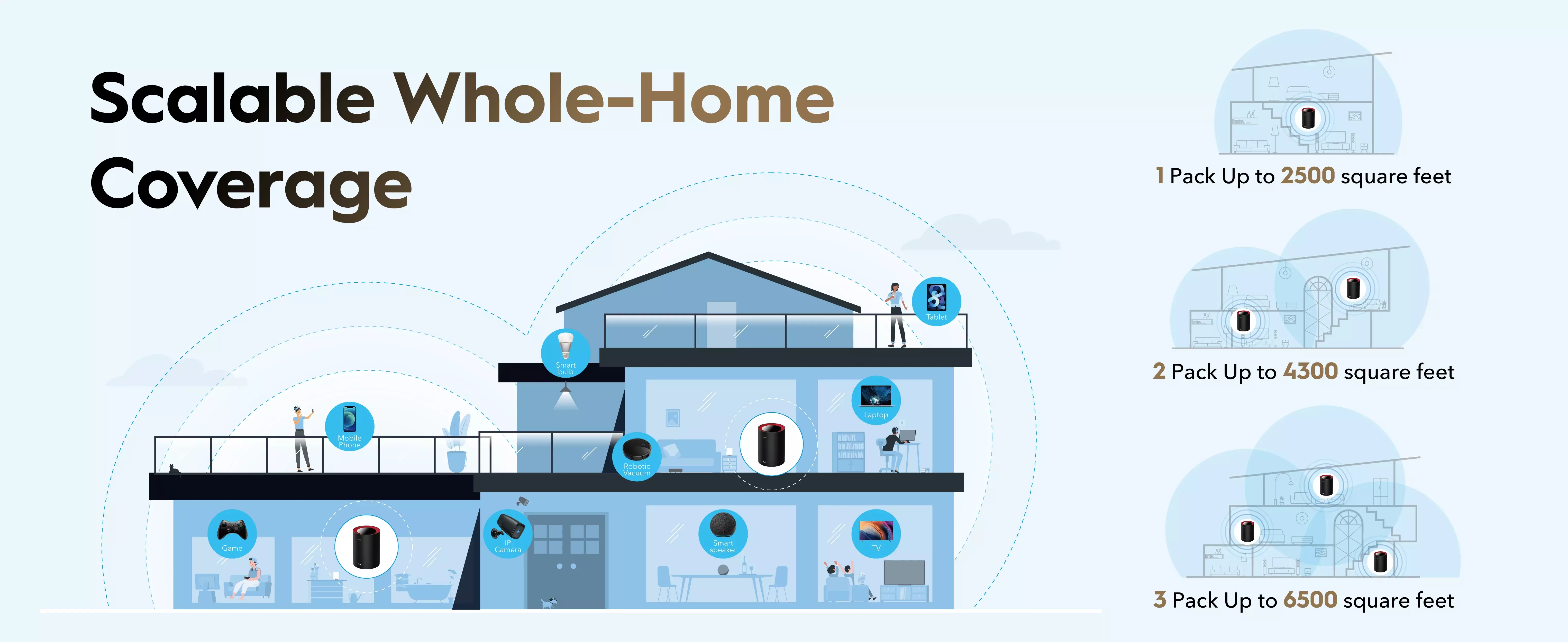3 Pack: 600 m² (5500 sq ft) Applied to wireless backhaul situation. Place in the center of |
