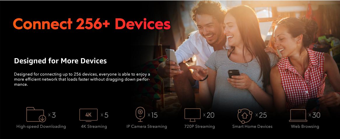 With a revolutionary combination of DL/UL OFDMA and MU-MIMO technology, WR3000 provides up to 8X(2.4GHz) to 16X(5GHz) greater network capacity and efficiency in traffic-dense environments.
