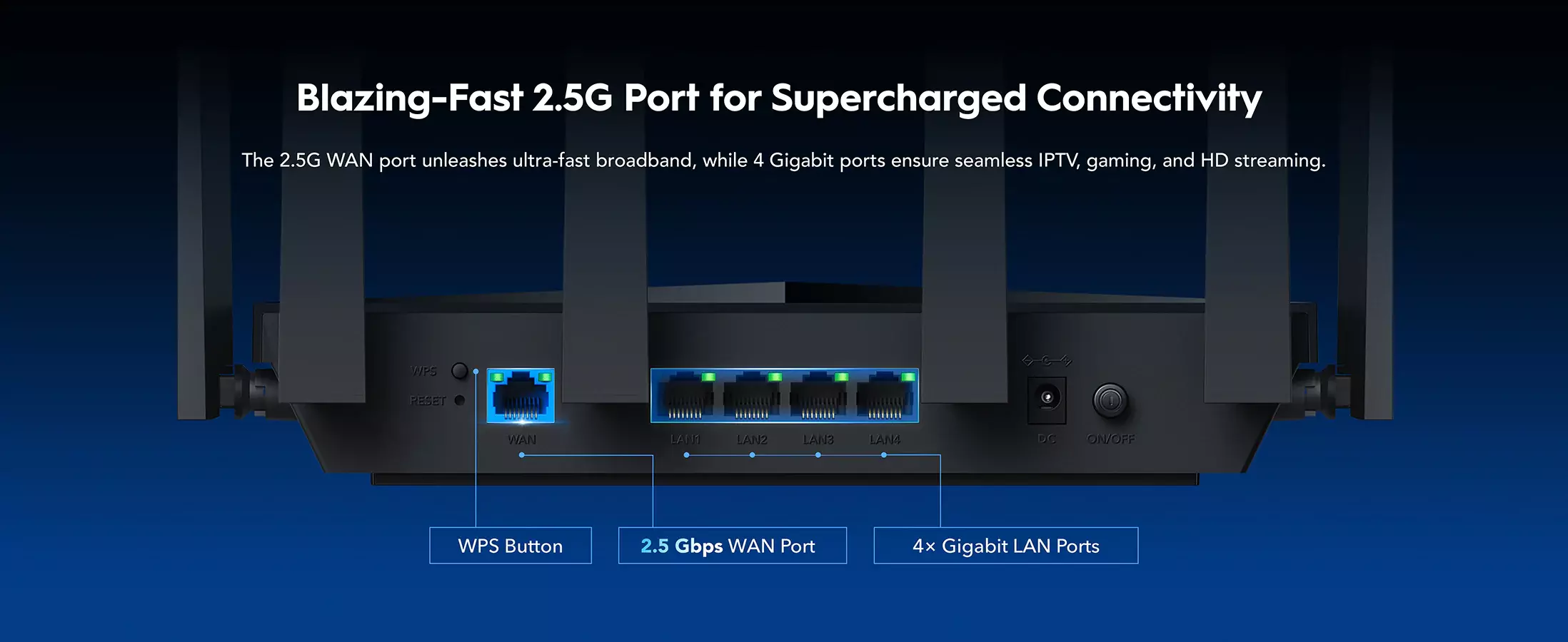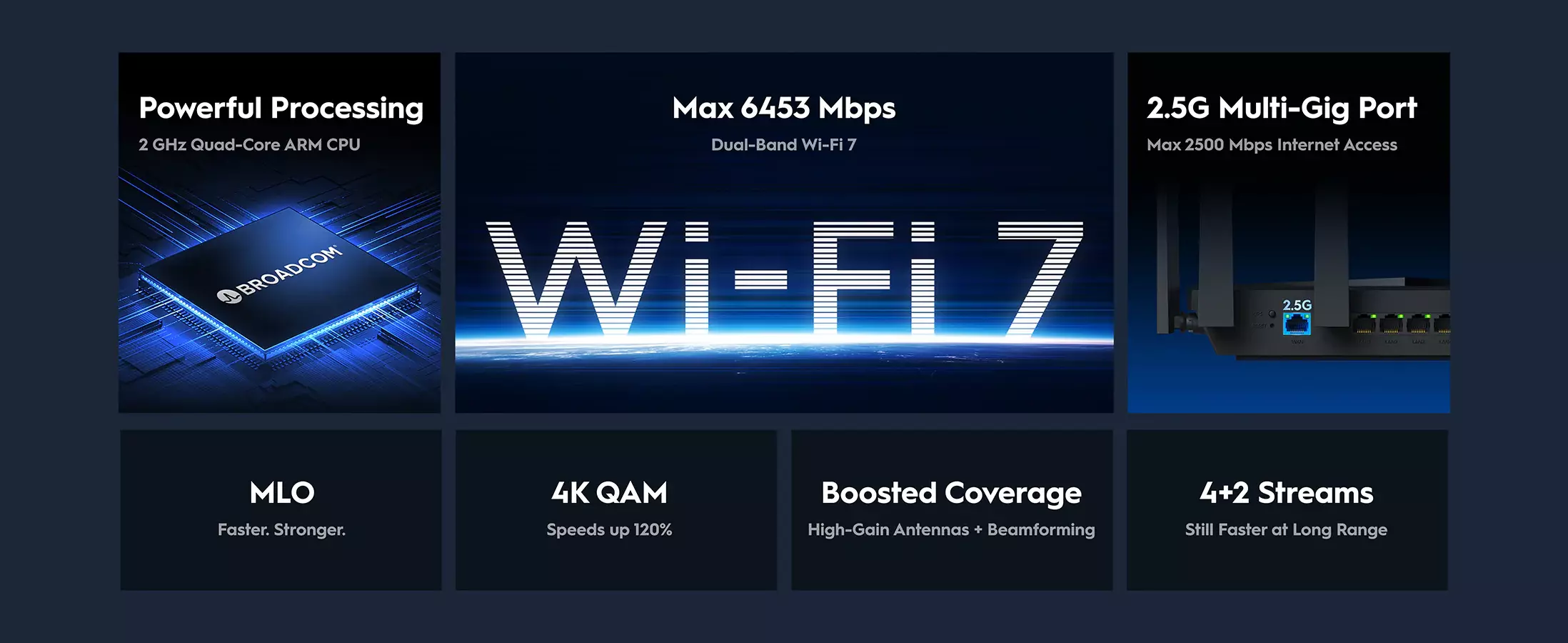 Безжичен рутер Cudy BE6500 2.5Ghz Wi-Fi 7, 1x2.5Gbps WAN порт,4x10/100/1000, 6x5dBi антени