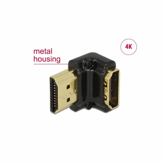 Адаптер Delock 65662, HDMI-A женско с Ethernet - HDMI-A мъжко, 4K, 90°, Черен