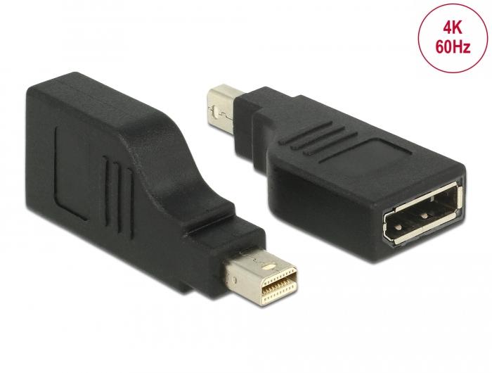 Адаптер Delock, mini DisplayPort 1.2 мъжко - DisplayPort женско, 4K, 90°, Черен