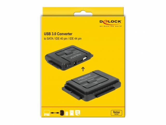 Конвертор Delock, USB 5 Gbps - SATA 6 Gb/s / IDE 40 pin / IDE 44 pin, backup функция
