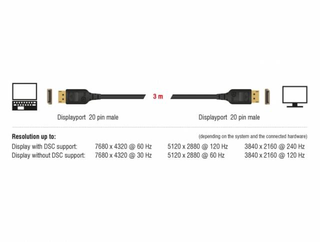 Кабел Delock 85661, DisplayPort мъжко - DisplayPort мъжко, 3.0м, 8K 60 Hz, Черен