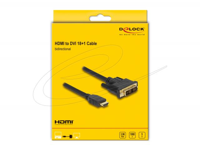 Кабел Delock HDMI мъжко - DVI-D 18+1 (Single Link ) мъжко, 2м, двупосочен, черен