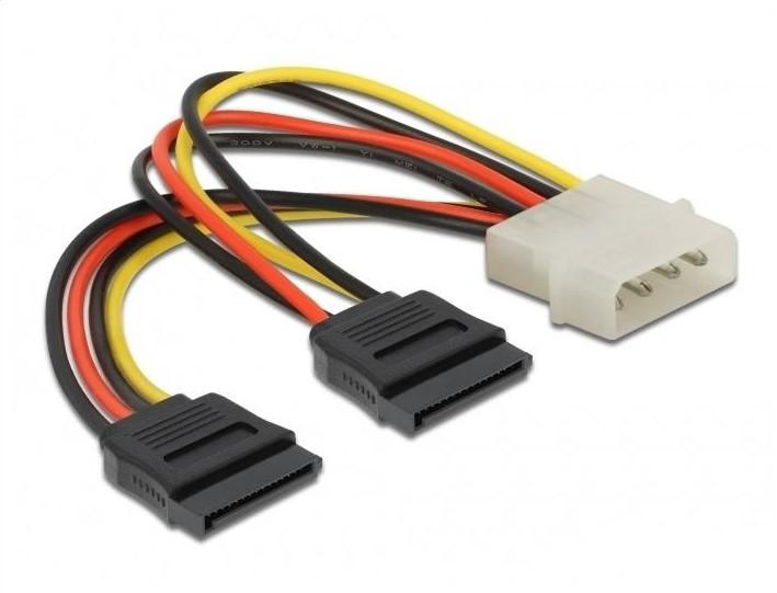 Кабел DeLock Power Molex 4 Pin мъжко към 2 x SATA 15 Pin, 16 cm