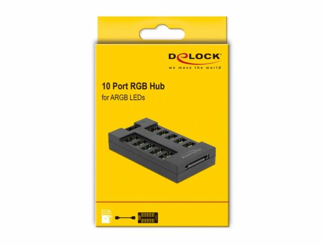 RGB хъб Delock 64128, 10 портов ARGB LEDs, Черен