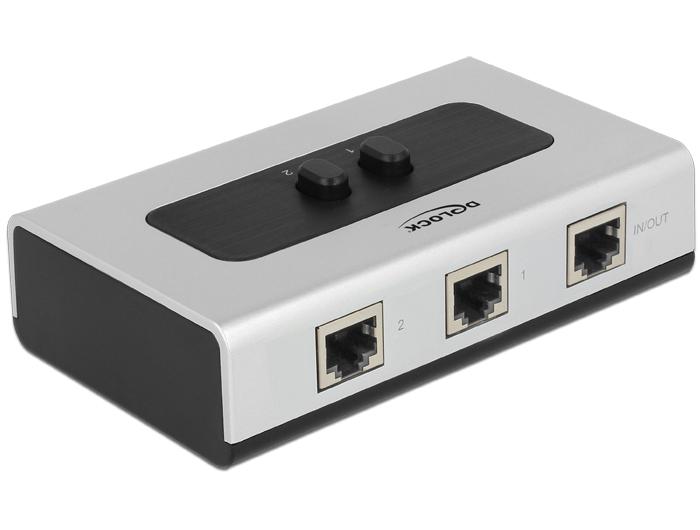 Ръчен двупосочен превключвател RJ45 от Delock, за свързване на различни устройства с RJ45 порт.