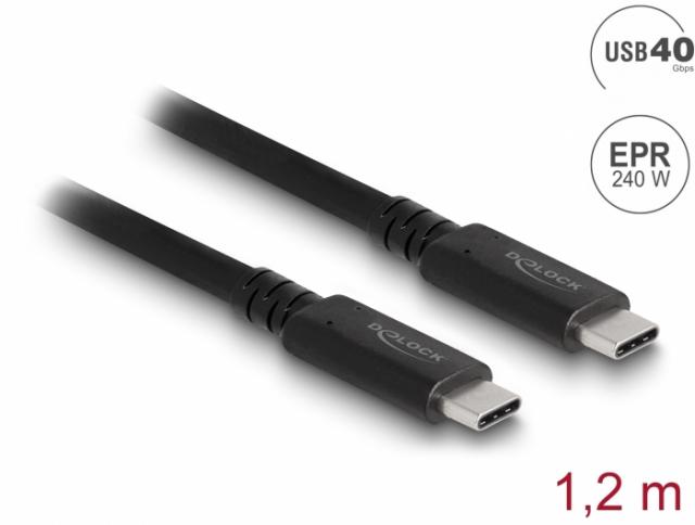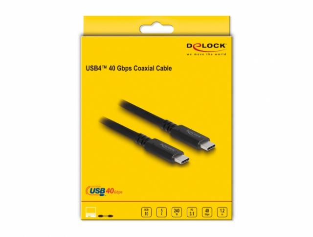 Коаксиален кабел Delock USB4 40 Gbps, USB PD 3.1, 1.2 m, Power Range 240 W