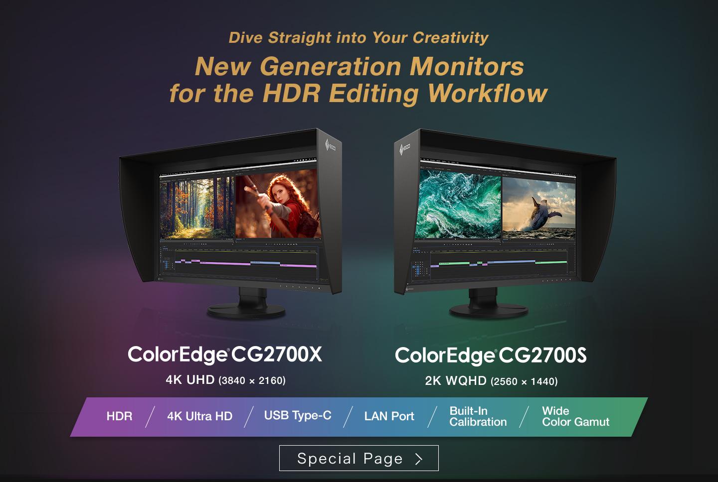The ColorEdge CG2700X is one of the flagship models for the latest generation of ColorEdge color management monitors. It features HDR gamma support, USB Type-C connectivity, a built-in calibration sensor, and a new cabinet design.