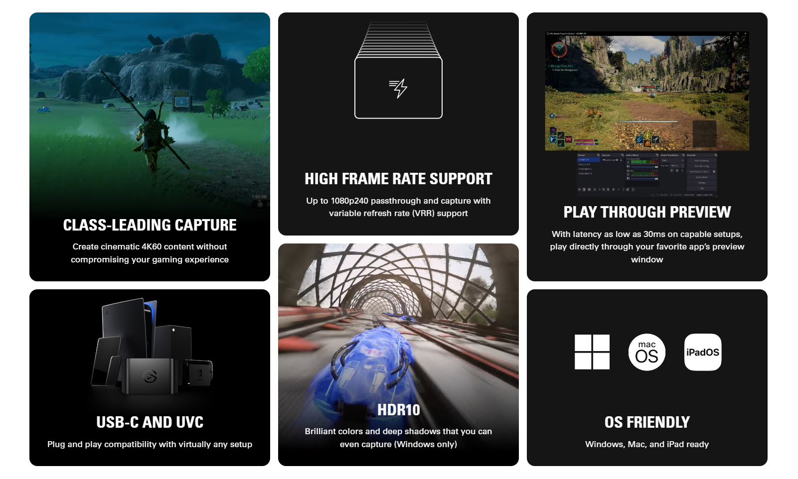 - Съвместим с OBS Studio, Streamlabs, Elgato 4K Capture Utility