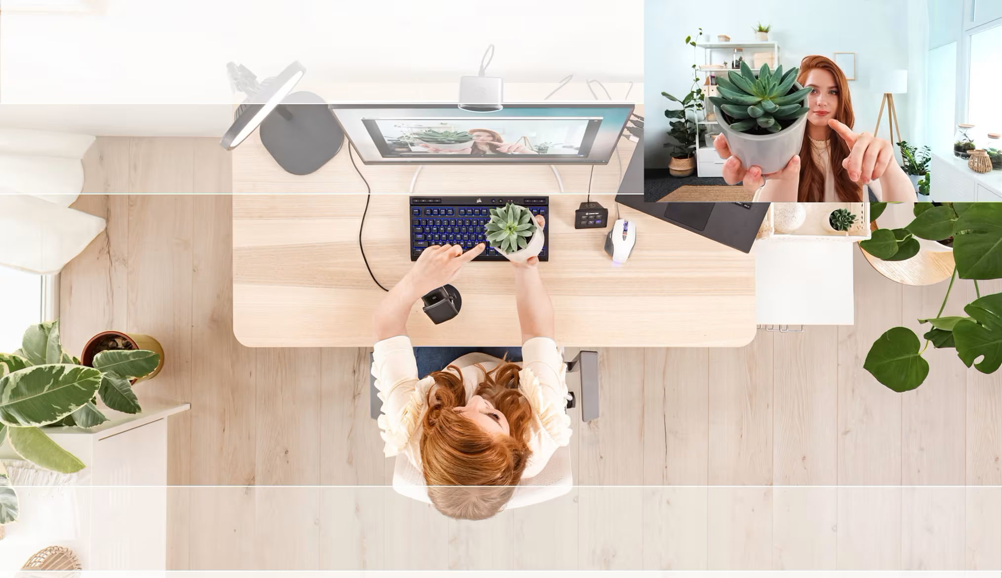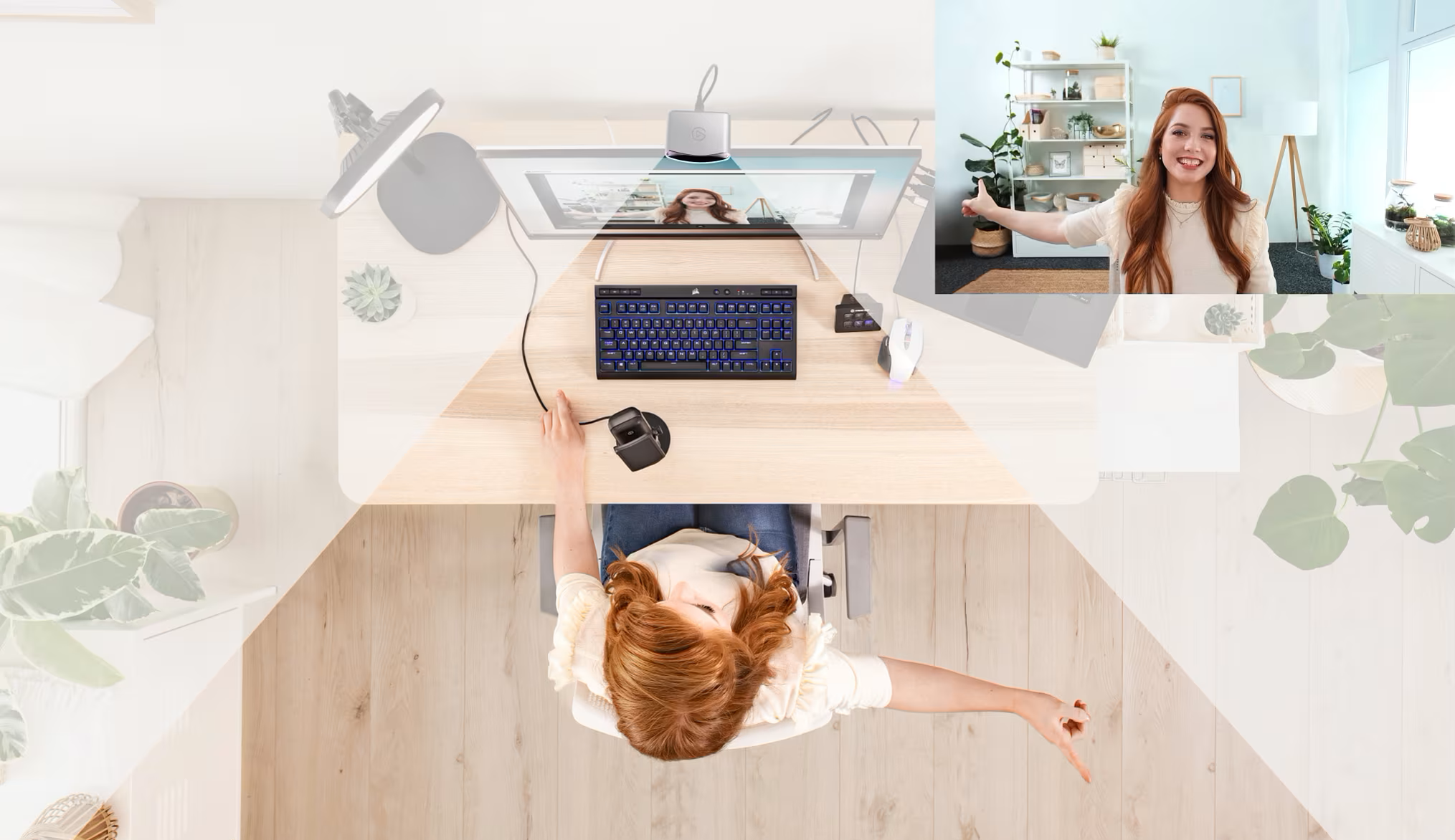 With a focal length of 24 mm* and an f/2.4 aperture, the lens inside of Facecam is tailor-made for desk setups.